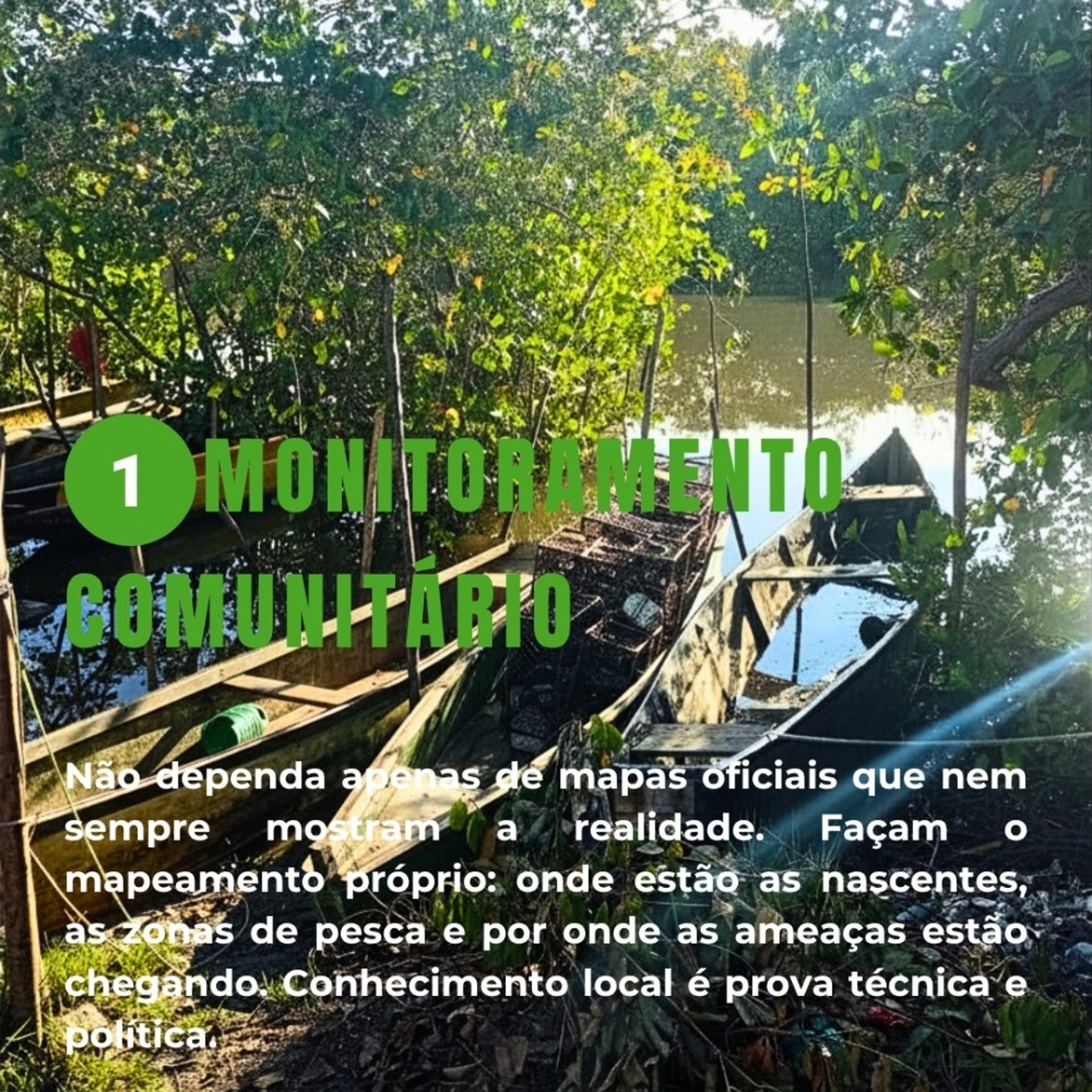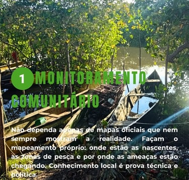 O que fazer: Organizem o mapeamento próprio da comunidade. Identifiquem onde estão as nascentes, as zonas de pesca fundamentais e por onde as ameaças externas estão chegando.