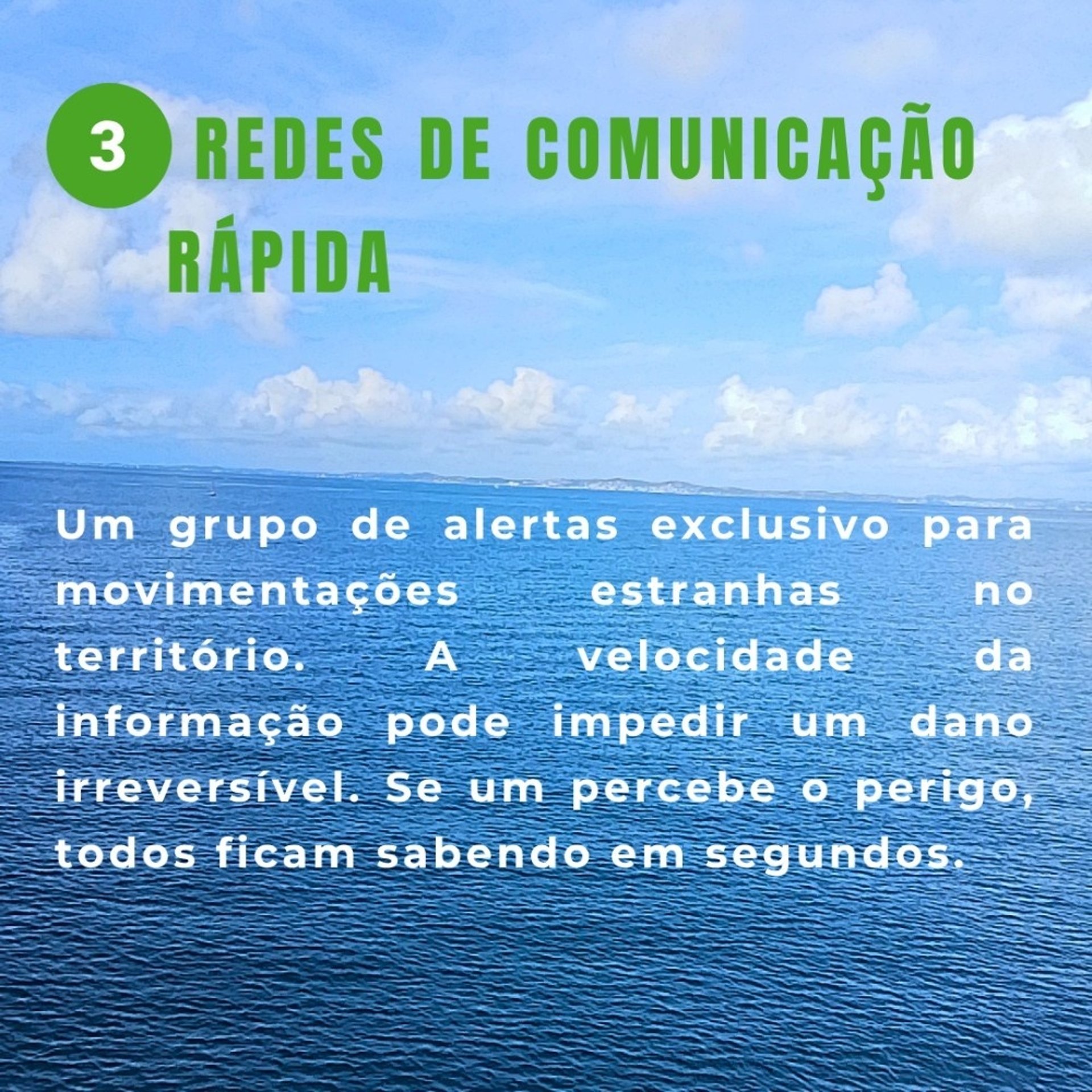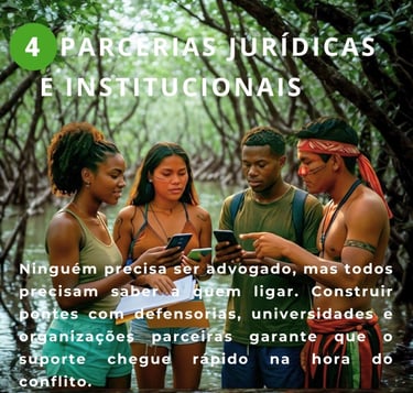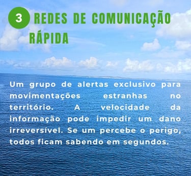 O que fazer: Mantenham grupos de alerta exclusivos (como no WhatsApp) para movimentações estranhas no território. Se um pescador ou marisqueira percebe o perigo, a rede inteira fica sabendo em segundos.